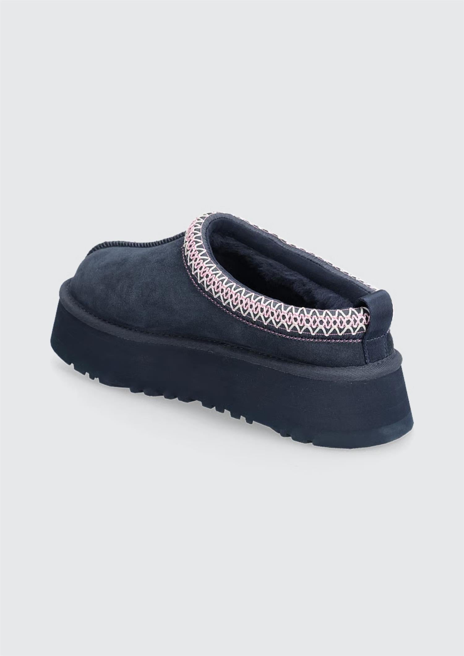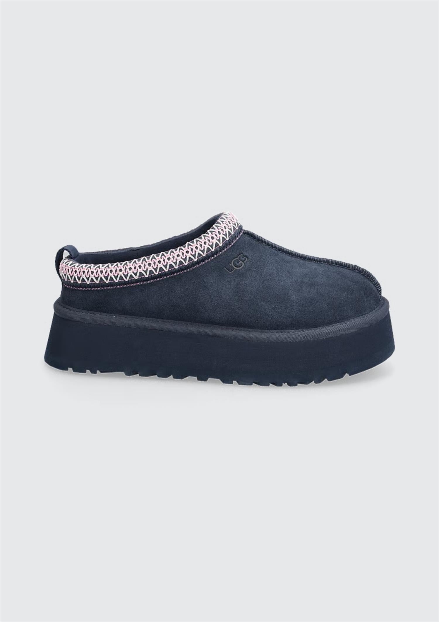 BESKRIVELSE: Tazz er en variant av den tidløse Tasman-slippersen fra UGG med plattformsåle. Kan brukes både innendørs og utendørs. Tazz er fôret med ull og har overdel i mykt semsket skinn med brodert flette. Kombiner med boyfriend-jeans og strikket genser for en kul look.