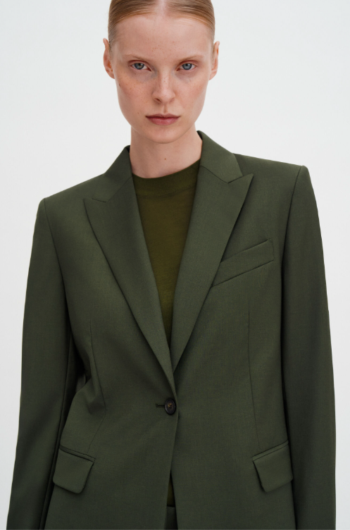 Beskrivelse: Sasha Cool Wool Blazer har en normal passform som er litt mer tilpasset i midjen. Det enkeltspente designet er skreddersydd i en ullblanding med stretch og med klassiske detaljer. Bruk den med Emma Cropped Cool Wool eller Emma Cool Wool Trousers for en hel dresslook.