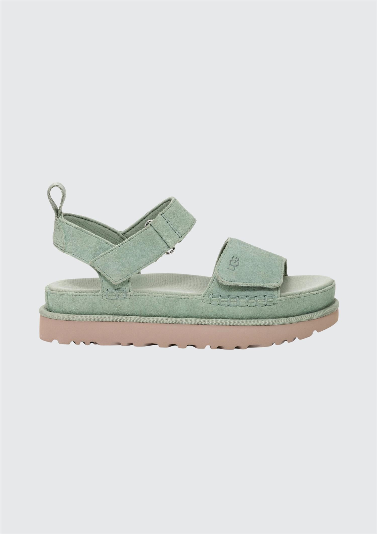 BESKRIVELSE: Dette er sandalen som føles som den klassiske UGG-støvelen. Laget av fløyelsmyk semsket skinn og laget med en ultra-dempet, men støttende skumfotseng og en lett yttersåle for bruk hele dagen. To sett med justerbare stropper gir en finjustert passform for komfortable dager på farten.