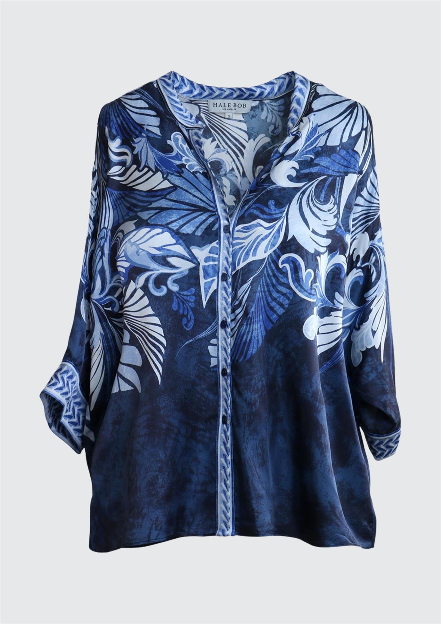 BESKRIVELSE: Neriah Top fra Hale Bob. En luftig blomstrete bluse, laget i silkeblanding. Blusen har korte ermer, v-hals og knapper foran. Kombiner gjerne med Beyza Trousers.