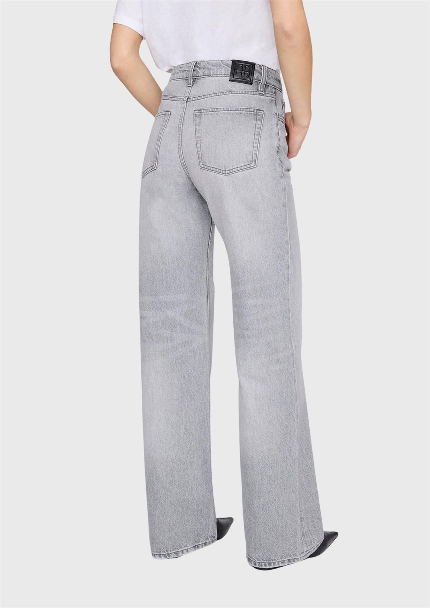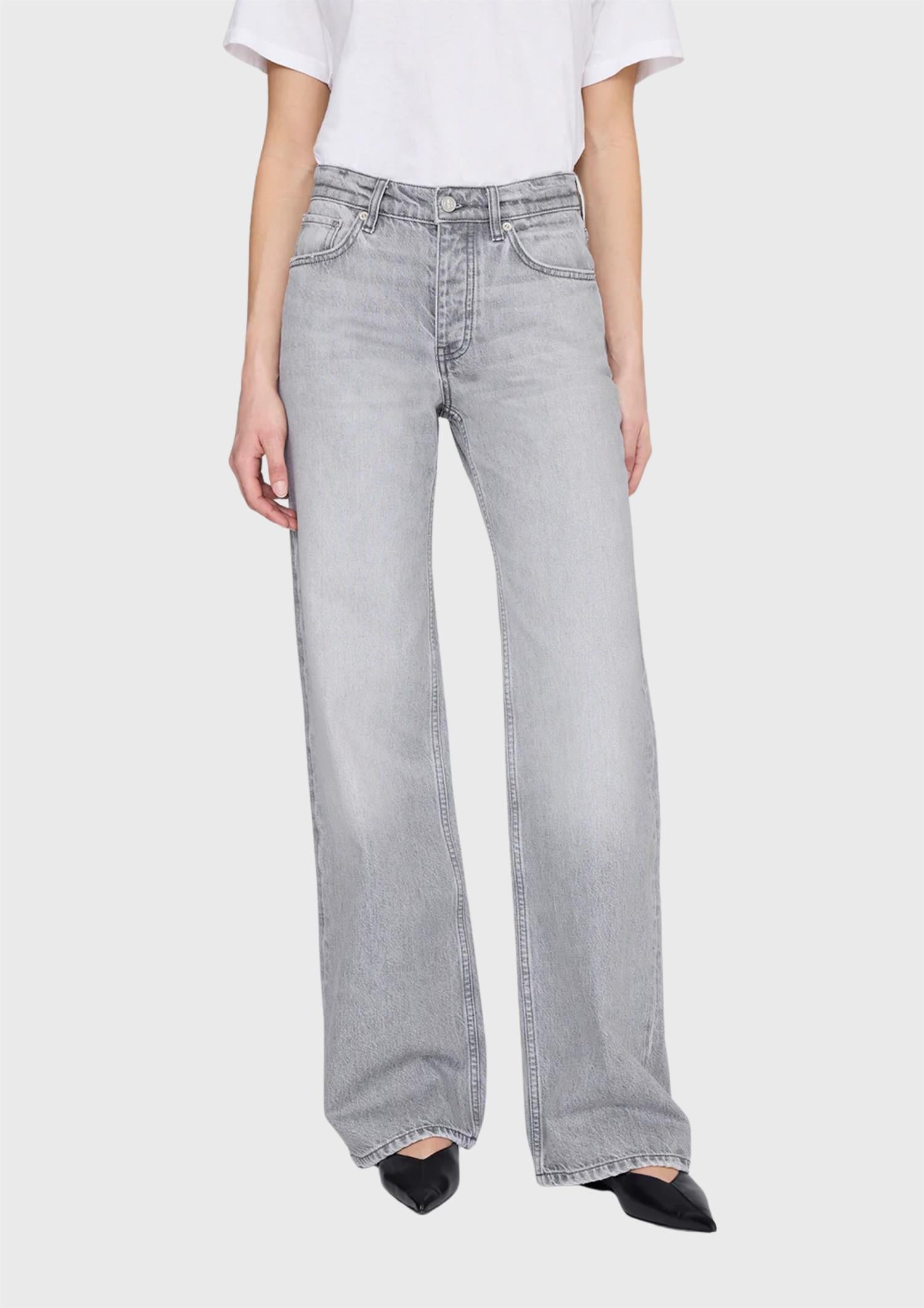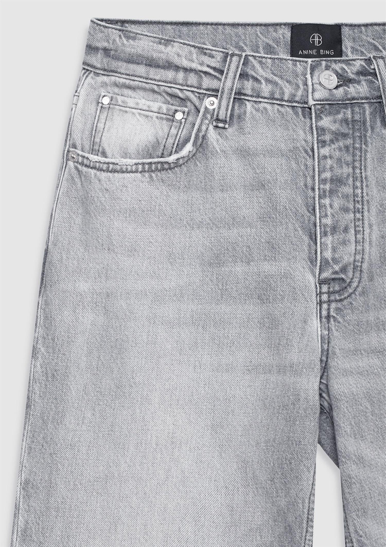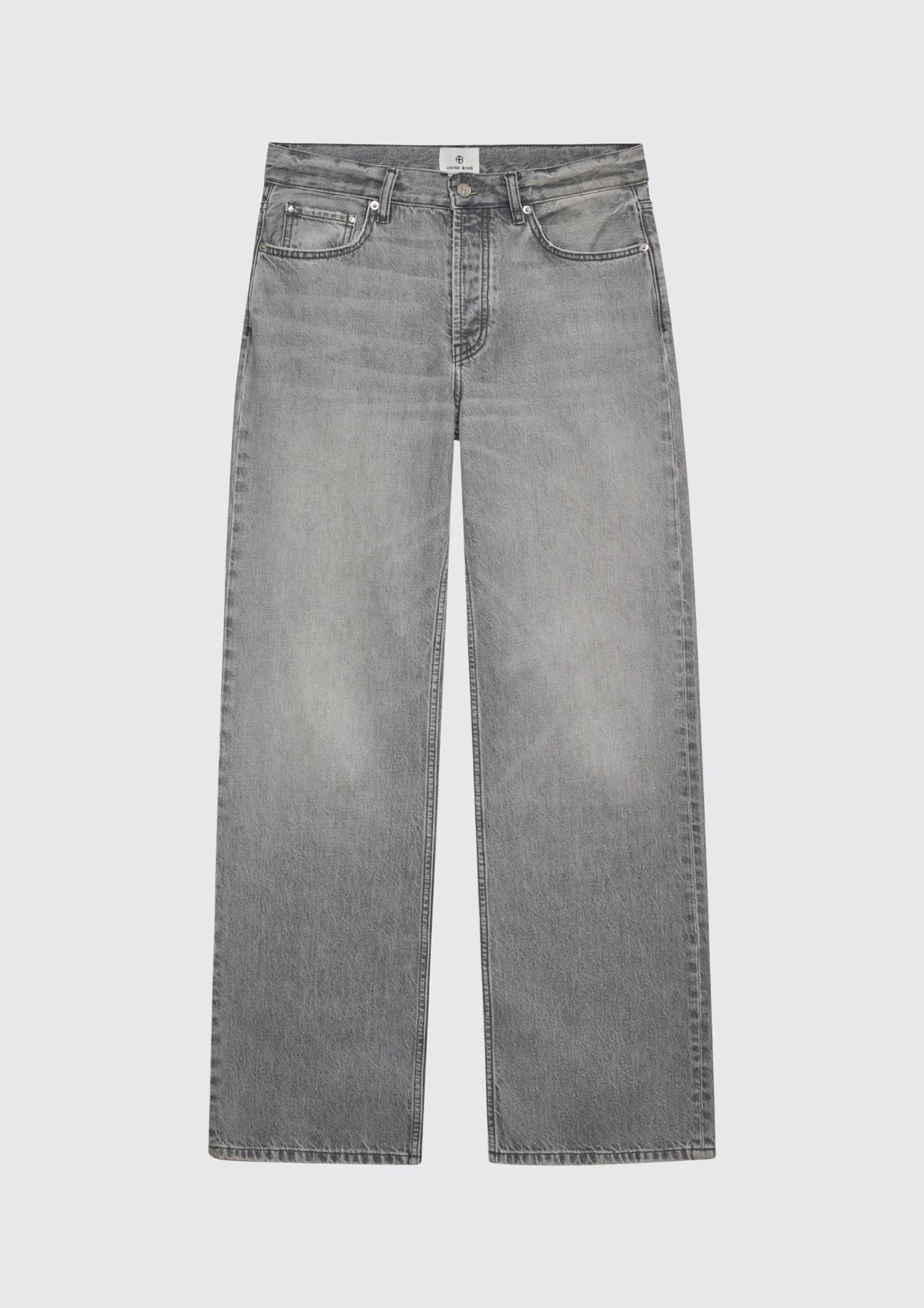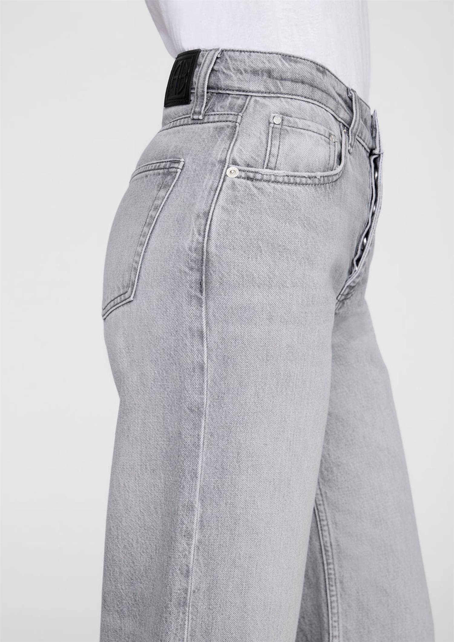 BESKRIVELSE: Hugh Jean er en avslappet jeans i 90-tallsinspirert design, laget av middels kraftig, stiv denim i regenerativ bomull uten stretch. Den har en grå vask med en naturlig, vintagepreget struktur.
