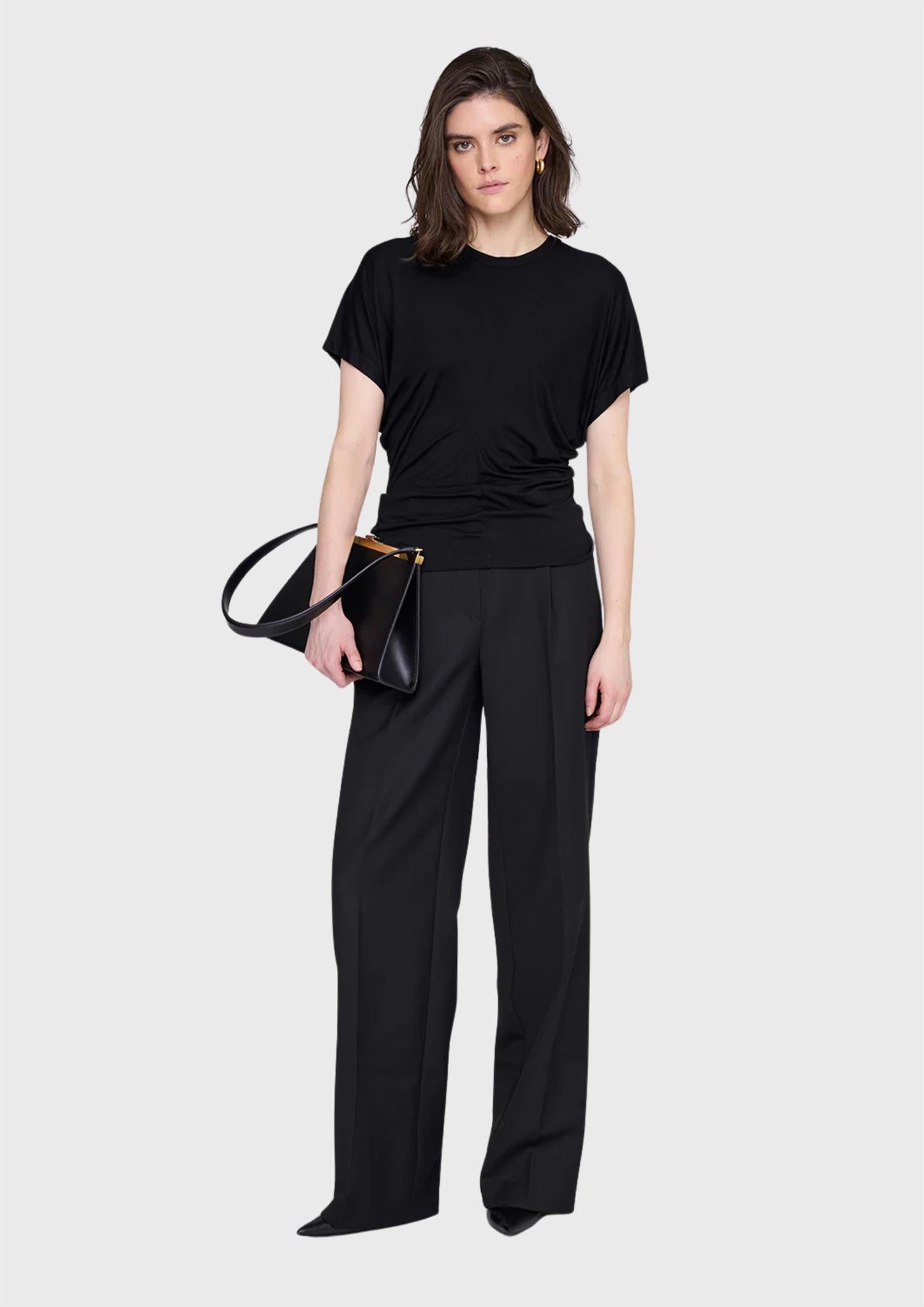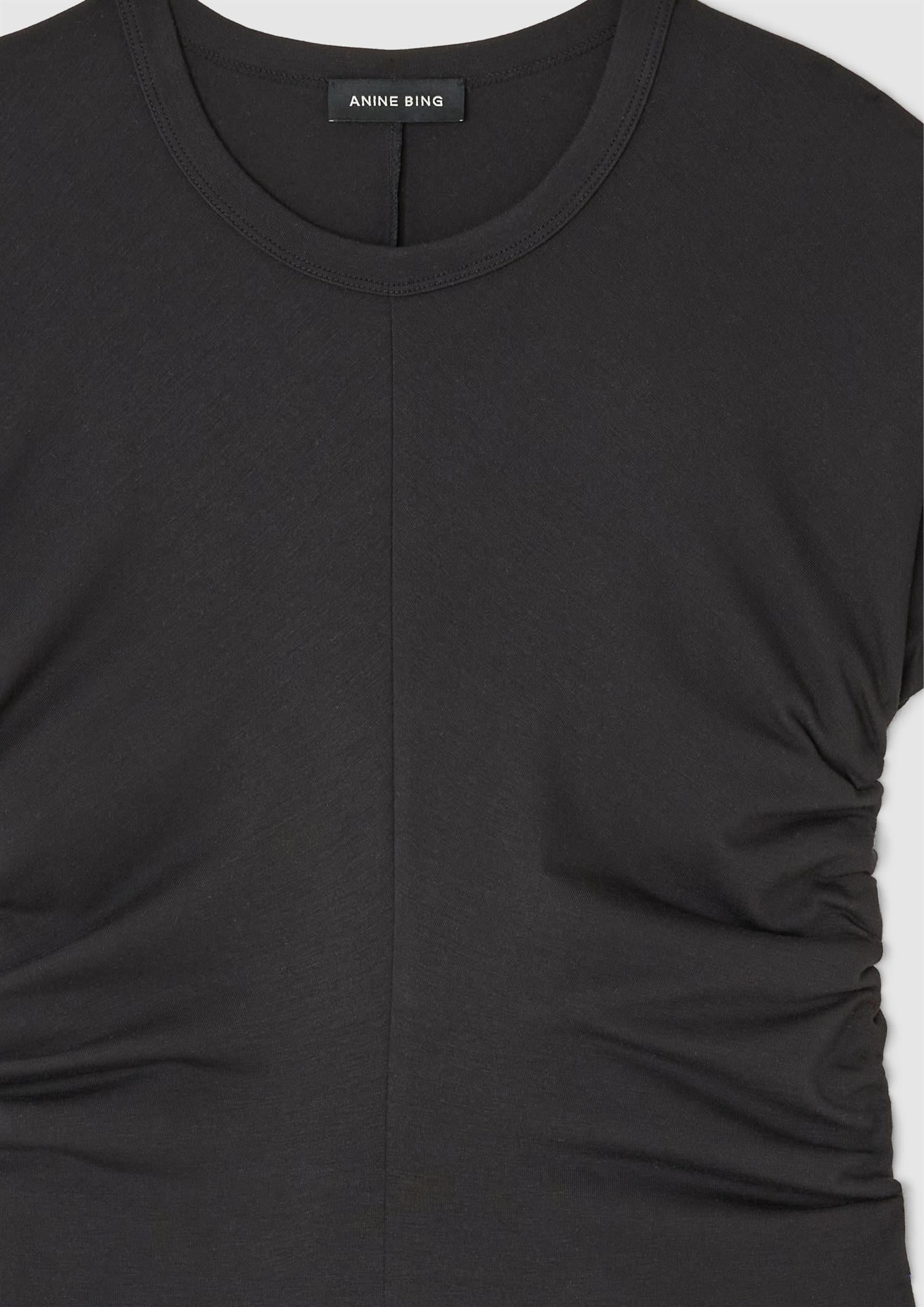 BESKRIVELSE: Denne t-skjorten er en oppgradert base med en feminin og gjennomført silhuett. De diskrete rynkedetaljene i sidene gir en flatterende passform og skaper et moderne uttrykk som løfter en ellers enkel t-skjorte. Perfekt når du vil ha noe avslappet, men fortsatt velkledd.