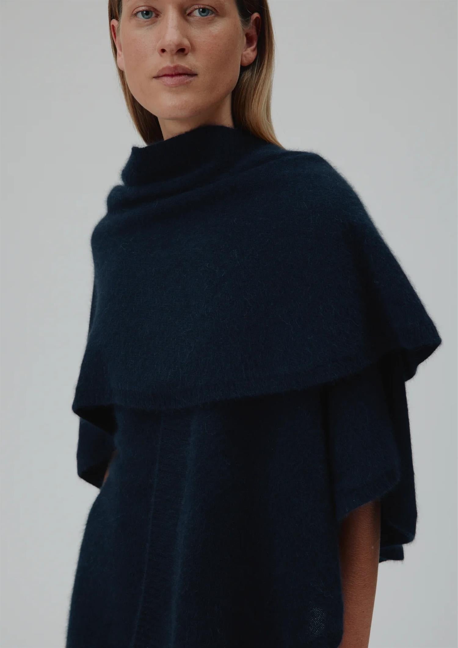 BESKRIVELSE: Sanne er en omsluttende cardigan i 100 % ultramyk vaskebjørnull, designet som en kappe for en avslappet, luksuriøs passform. Den har litt ribber foran og små ribbekanter, noe som gir en subtil tekstur til den moderne, sofistikerte silhuetten.