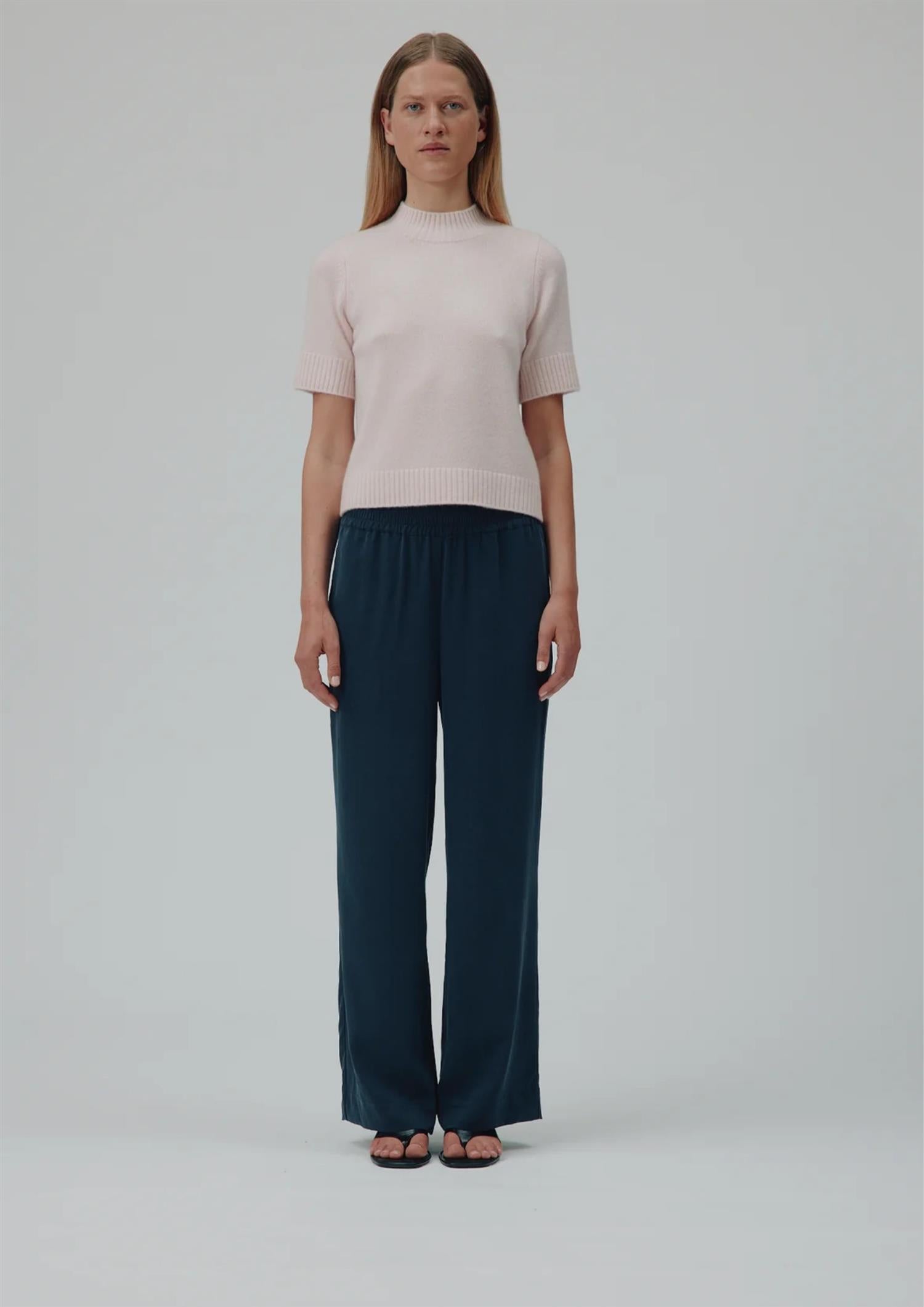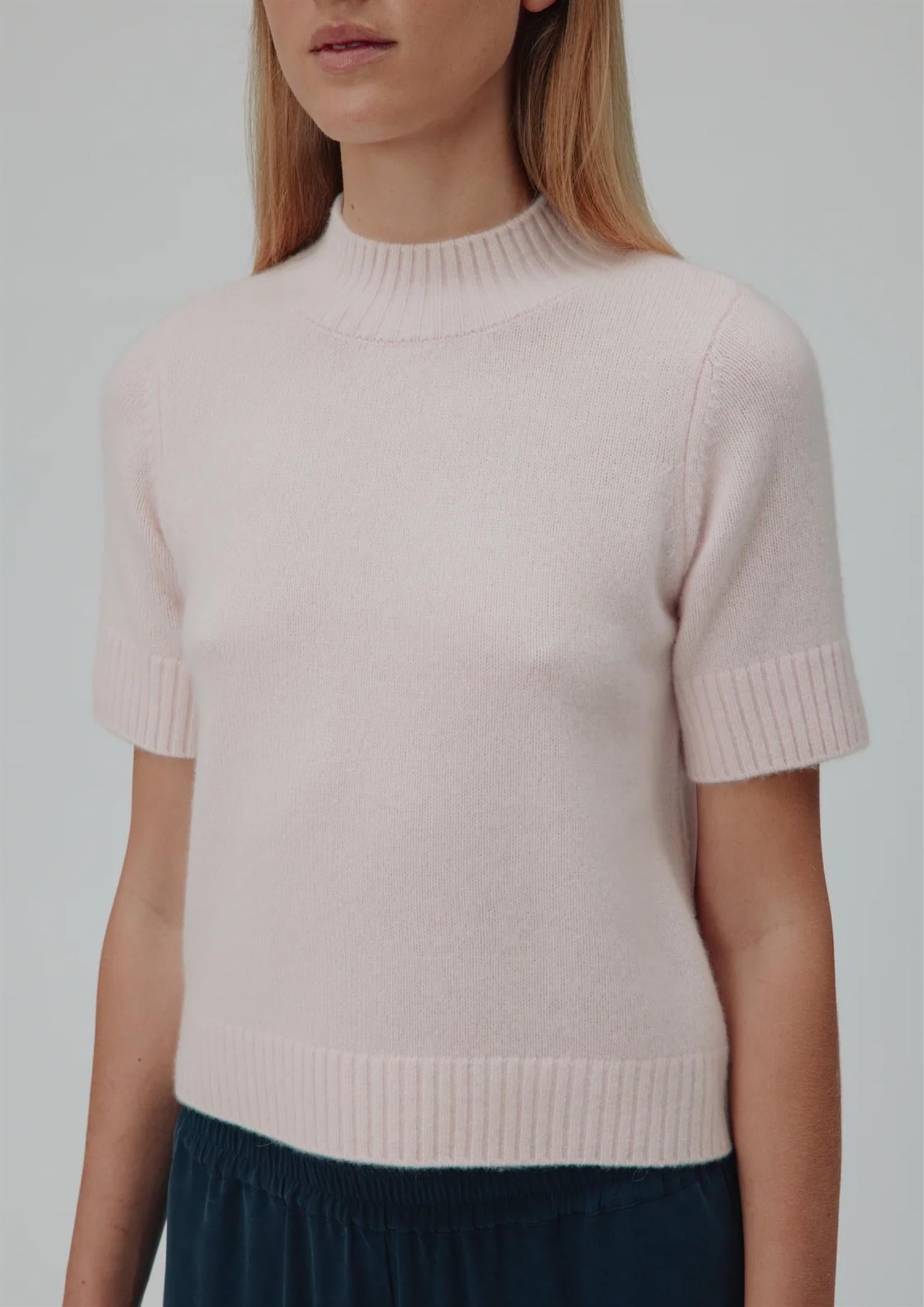 BESKRIVELSE: Remie er en tettsittende genser i t-skjortestil i 100 % enkel, strikket kasjmir. Den har høy, mock-neck hals og ribbekant i halsen, mansjettene og borden, noe som gir en komfortabel hverdagssilhuett.