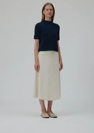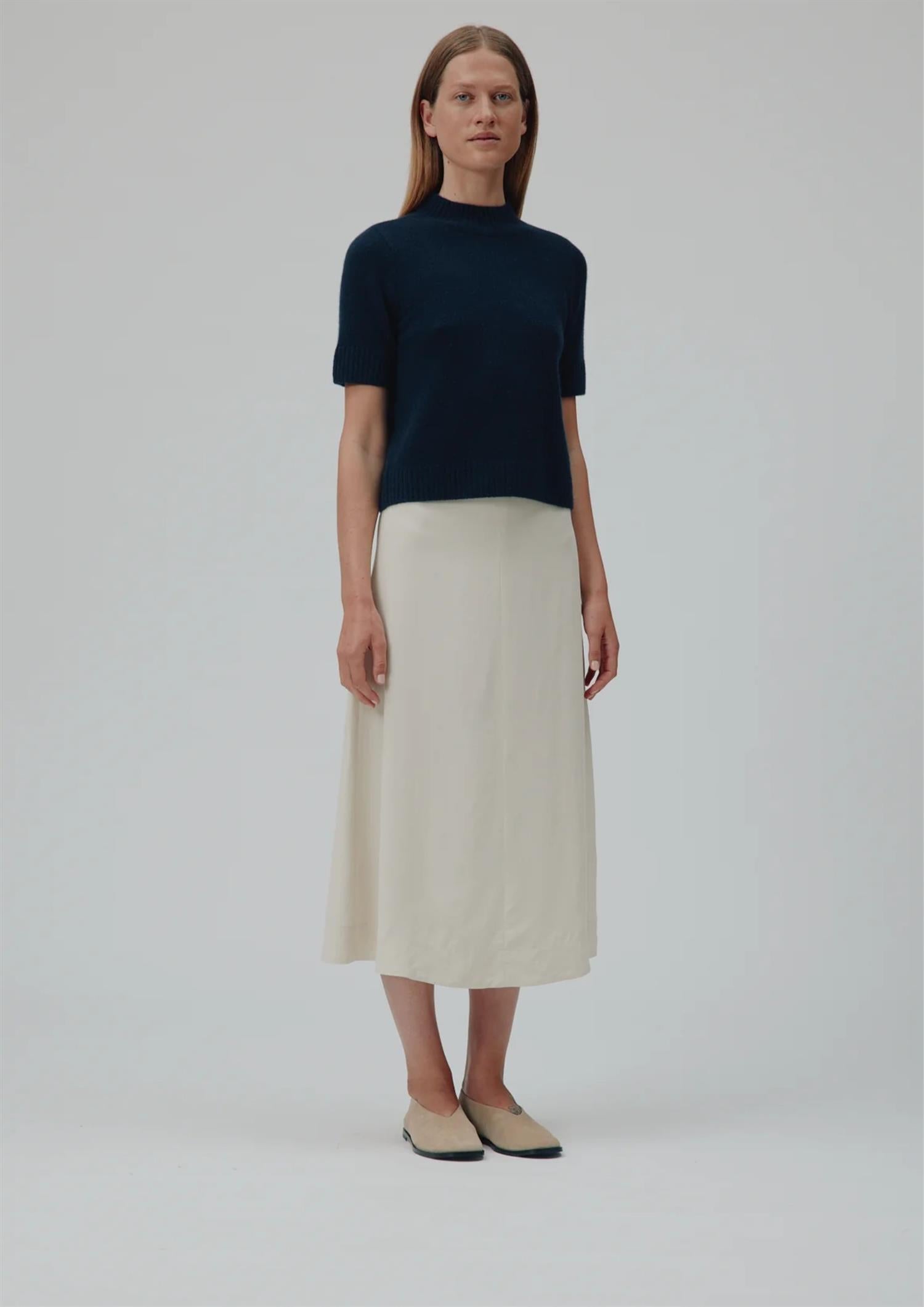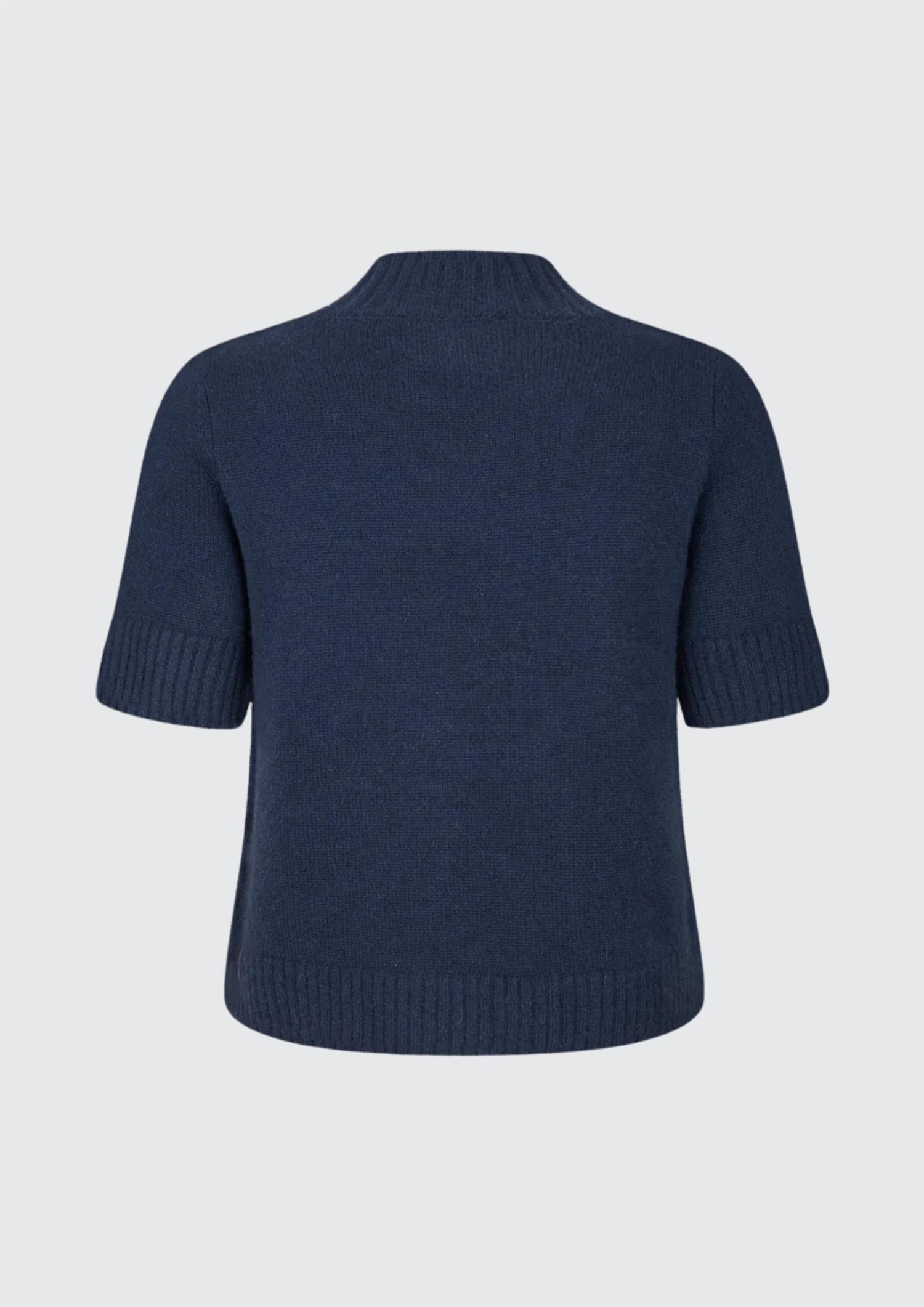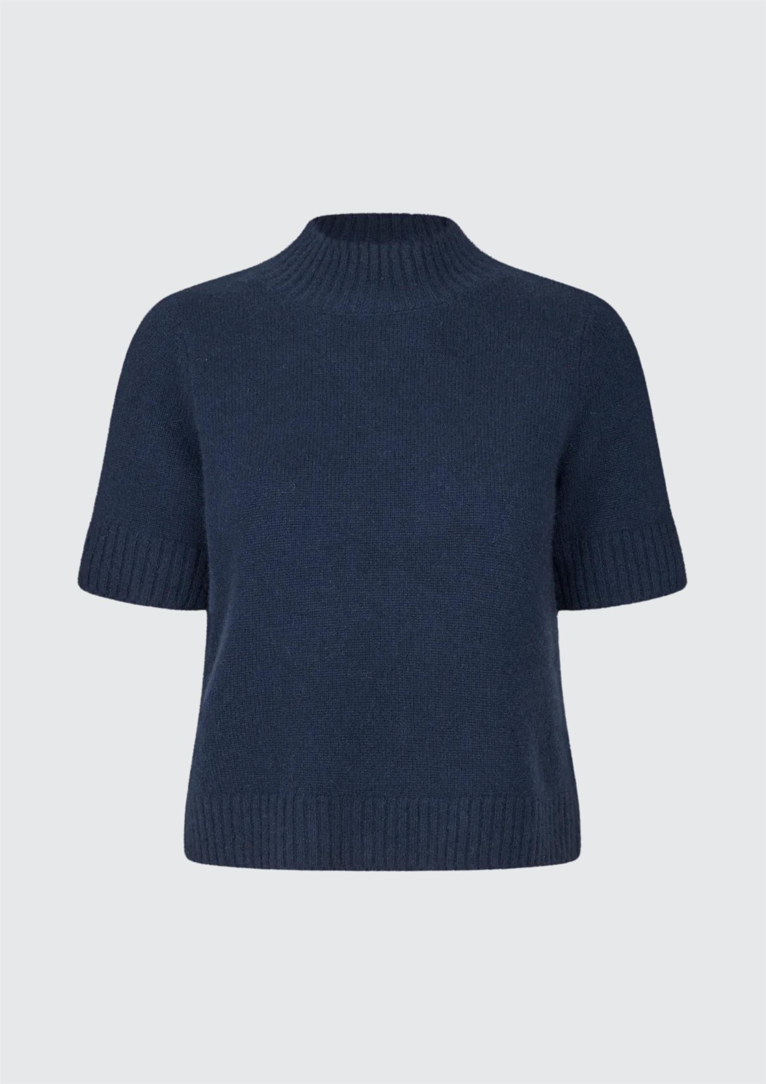 BESKRIVELSE: Remie er en tettsittende genser i t-skjortestil i 100 % enkel, strikket kasjmir. Den har høy, rød hals og ribbekant i halsen, mansjettene og falden, noe som gir en komfortabel hverdagssilhuett.