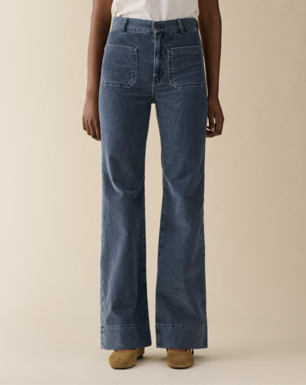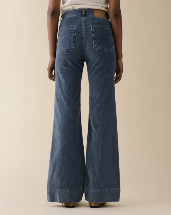 BESKRIVELSE: Dine nye favorittbukse med det lille ekstra! St Monica fra Jeanerica er inspirert av seilerstilen med lommer foran og bak, sleng og bred kantlinje. Buksen har knapp- og glidelåslukking med høyt liv og lang, flatterende beinlengde. Laget myk cord fløyel. En utrolig behagelig og fresh bukse!