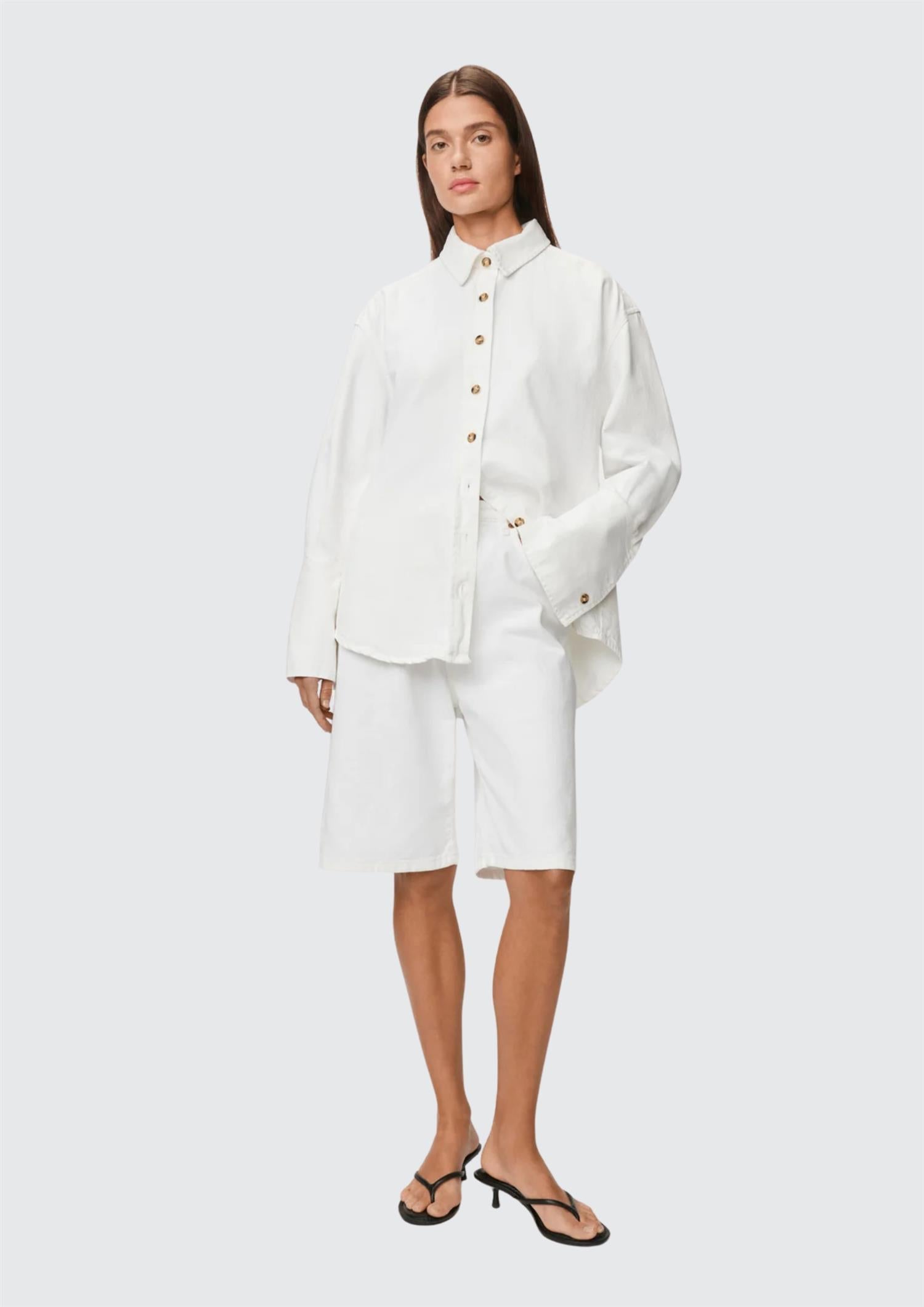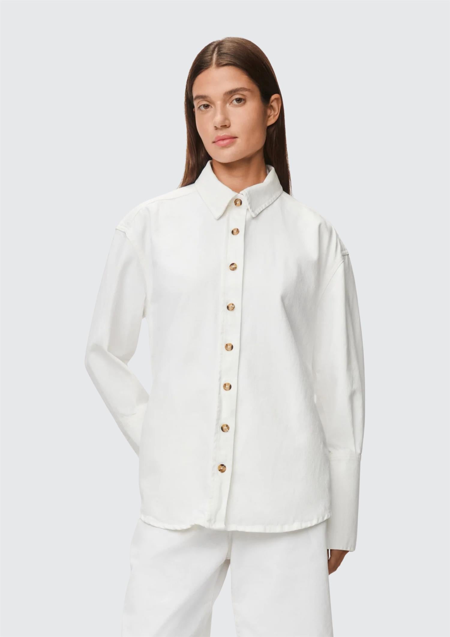 Den myke denimkvaliteten og de markerte mansjettene gir et strukturert, men uanstrengt uttrykk. Like fin lukket som en skjorte, eller åpen over en topp for en mer avslappet styling.