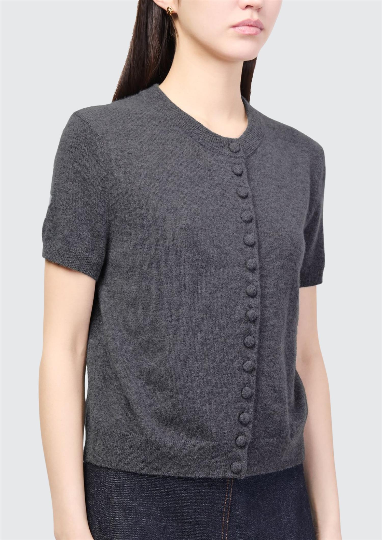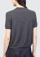 BESKRIVELSE: Lisa Yangs “Lunea”-cardigan i fargen graphite grey er et moderne og minimalistisk nøkkelplagg, strikket i luksuriøst myk cashmere. Den korte silhuetten med korte ermer og en skjult knappestolpe gir et raffinert, men likevel uanstrengt uttrykk som passer perfekt til lag-på-lag året rundt.