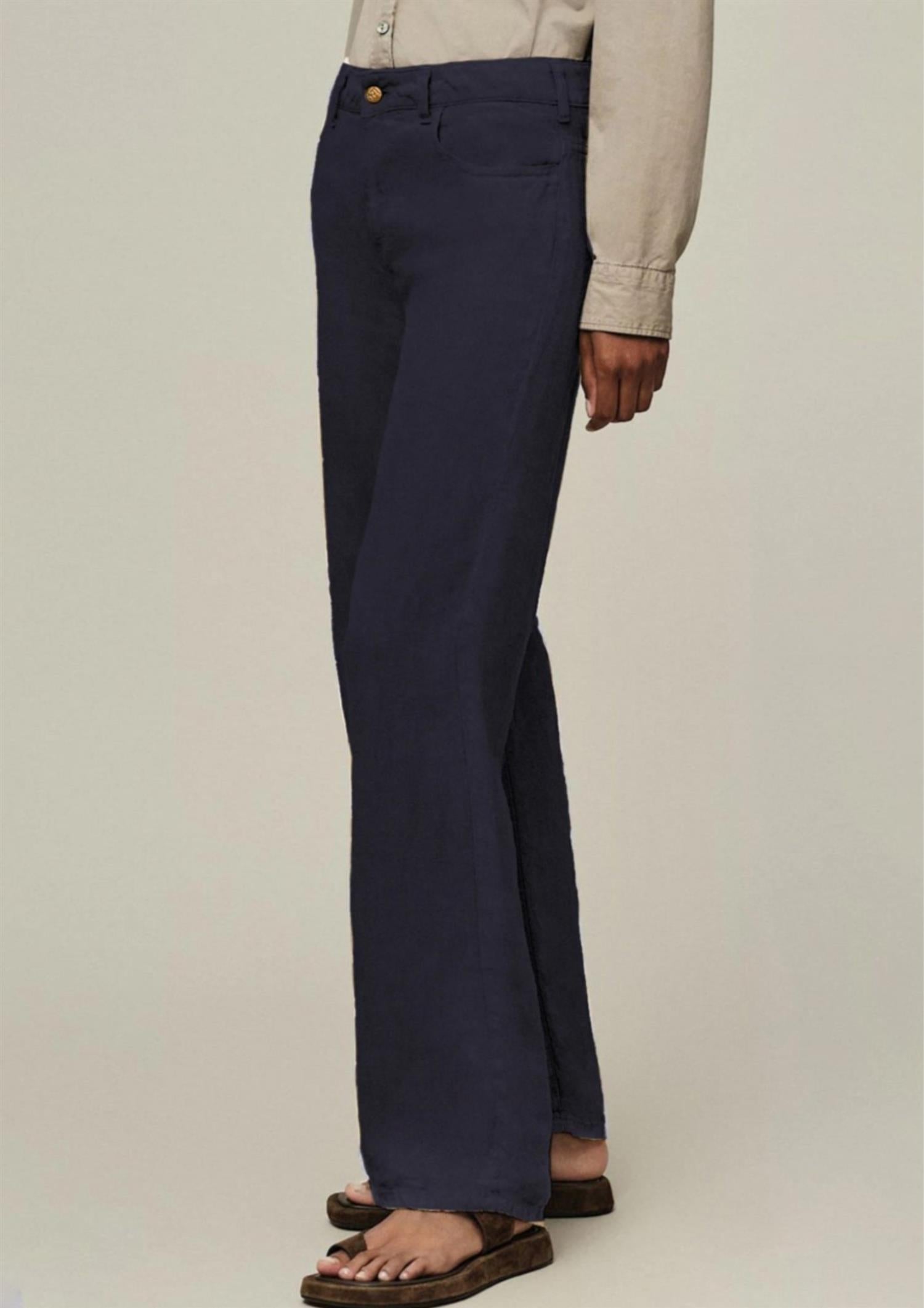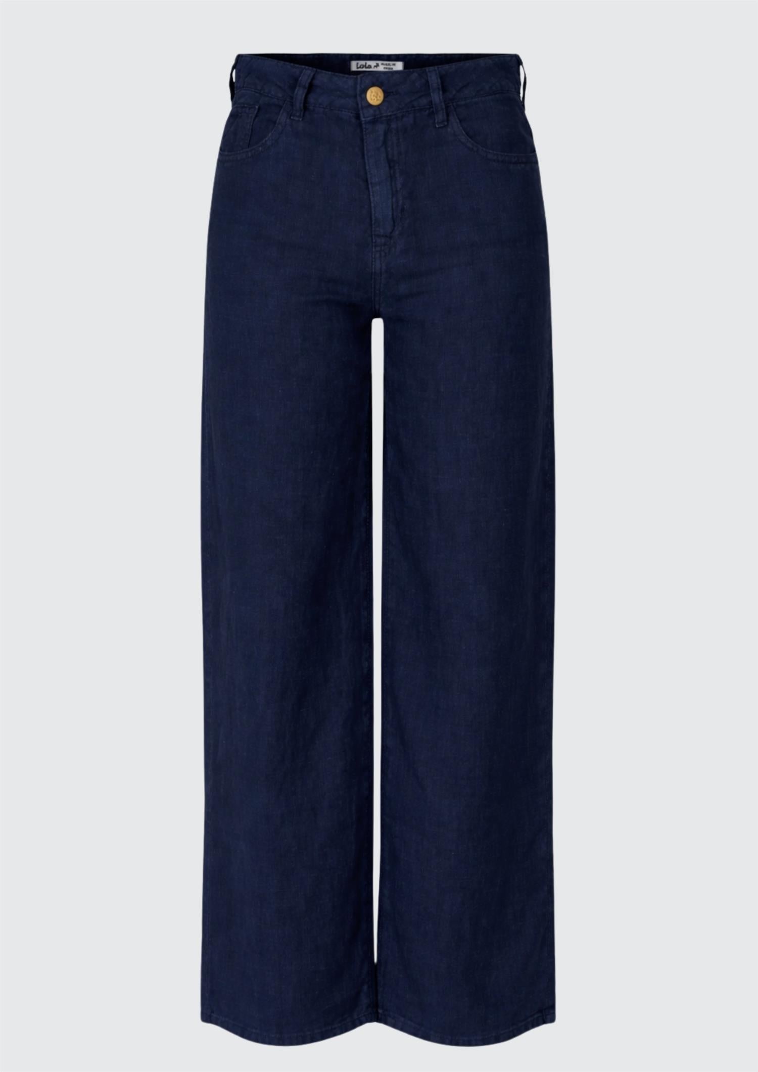 BESKRIVELSE: Culotte Linen Colour er en tynn og lett bukse fra Lois i myk og behagelig kvalitet. Buksen har avslappet passform med høyt liv og rette, vide ben. 5-lommersmodell med beltehemper. Lukkes med knapp og glidelås.