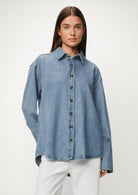 BESKRIVELSE: Lily Wilson Overshirt fra Lois er en western-inspirert denimskjorte i lys Piedra-wash med et avslappet, men gjennomført uttrykk. Den har relaxed passform med droppede skuldre og avrundet kant for en naturlig, laidback silhuett.