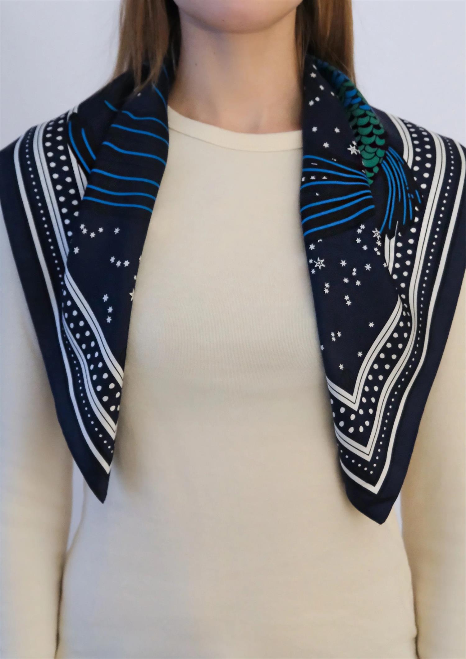 BESKRIVELSE: Silkeskjerf fra LeScarf med fisker.