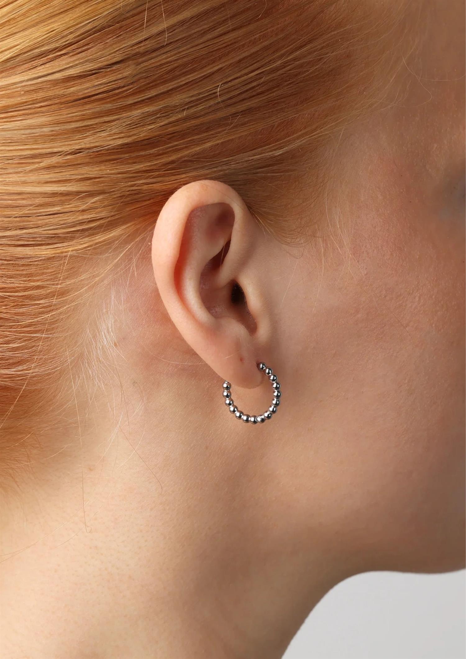 Beskrivelse: Boblestil øreringer i waterproof rustfritt stål med en dristig silhuett.