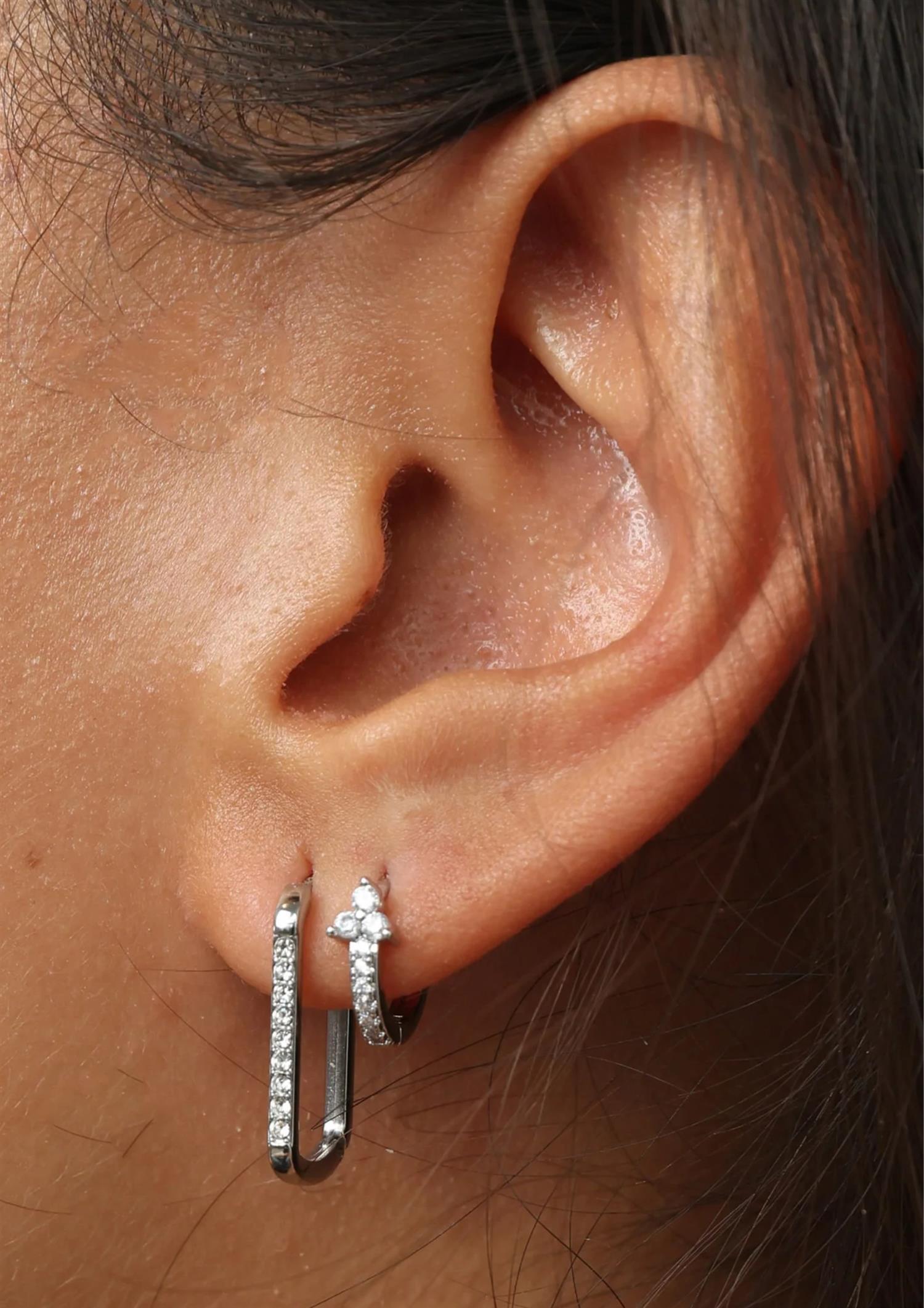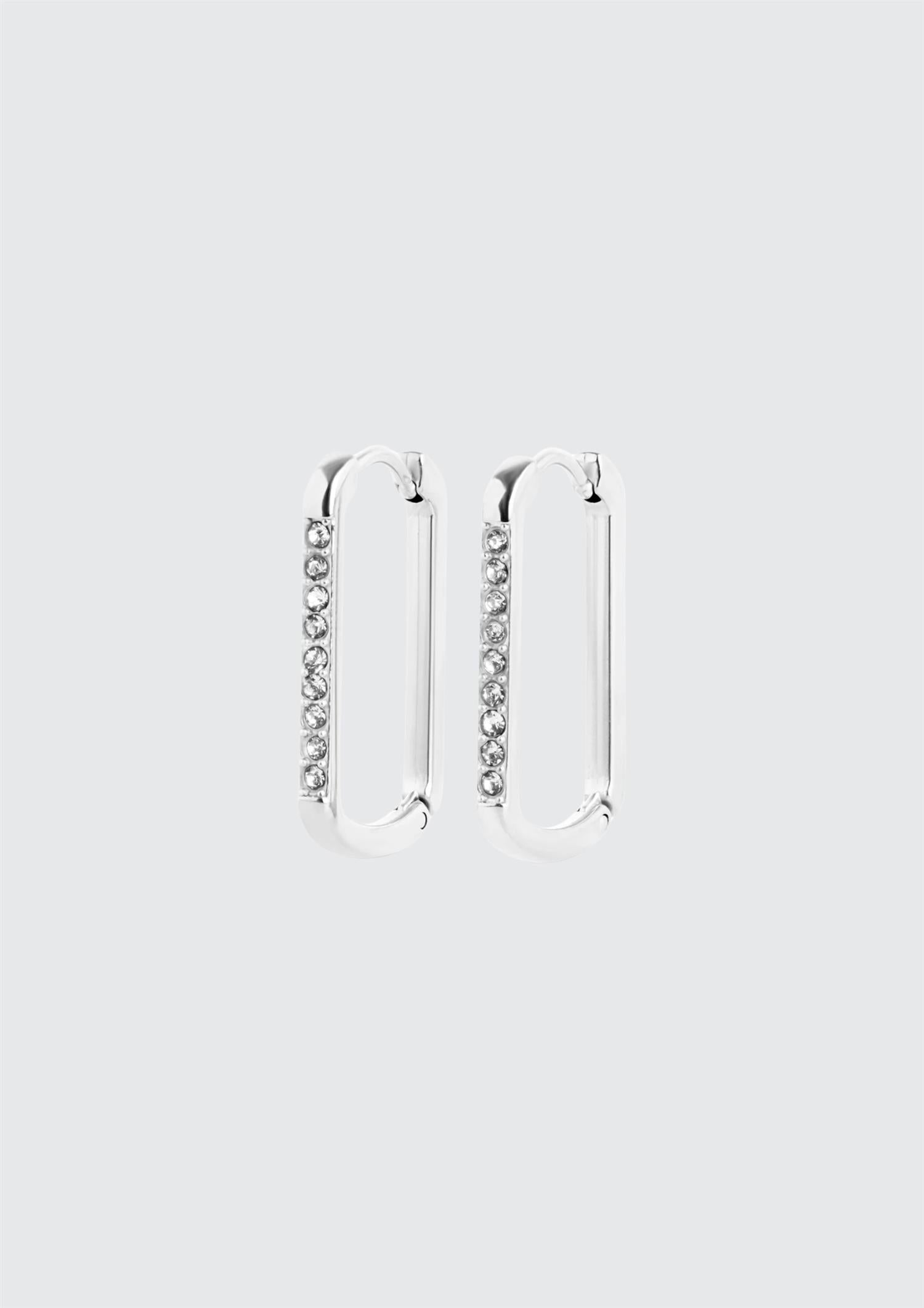 Beskrivelse: Krystallpyntet hoops i en vakker rektangulær form. Laget i waterproof rustfritt stål.