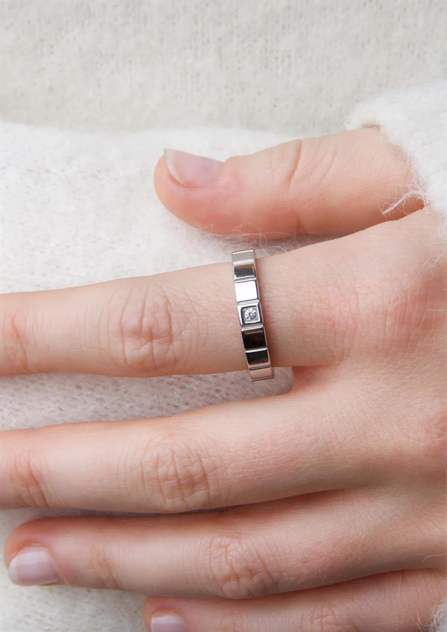 Beskrivelse: The Emelyn ring is crafted in waterproof stainless steel with a sleek band and delicate crystal. Available in silver and 18k gold plating – timeless and refined.