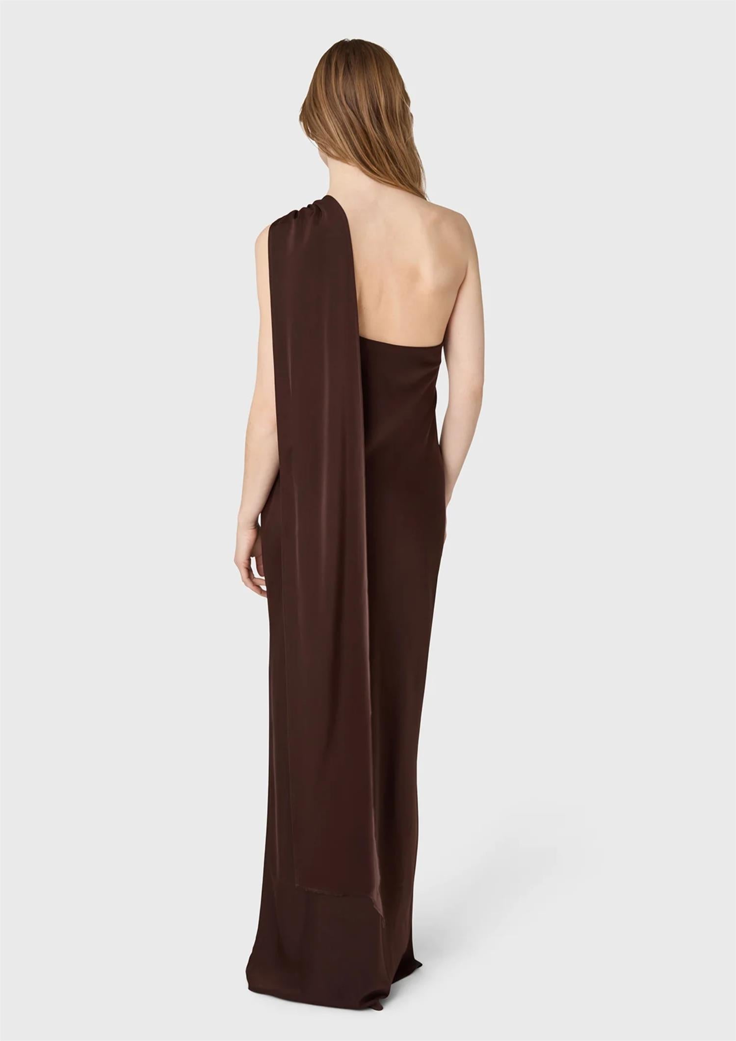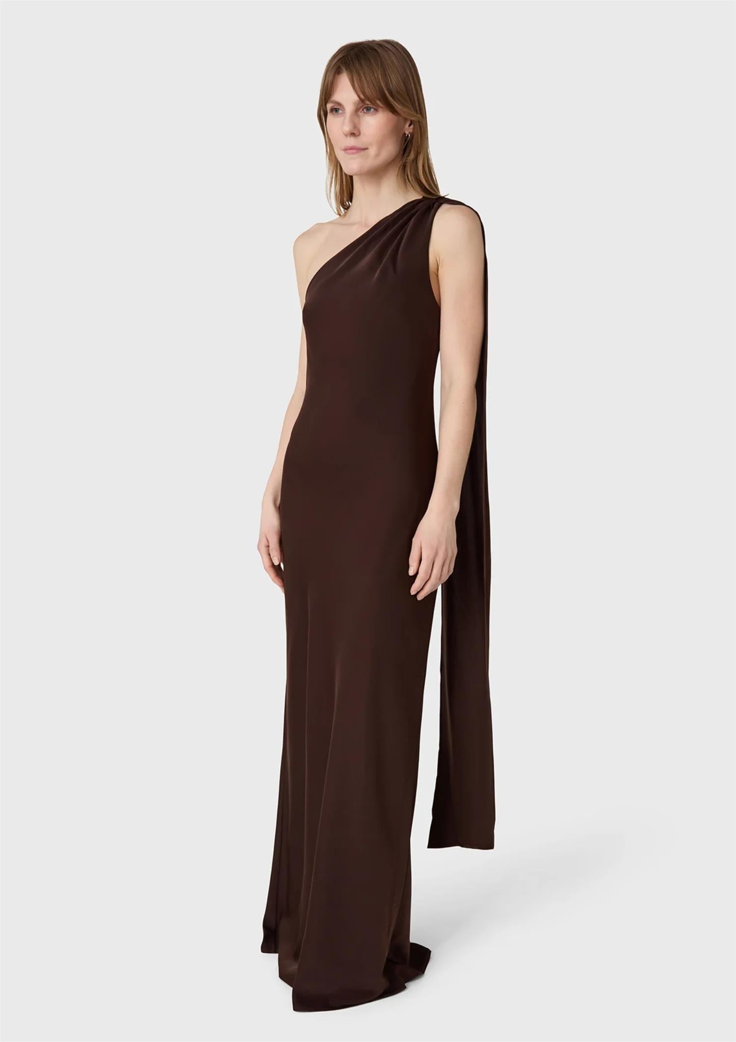 Den dekorative skjerfdetaljen tilfører et raffinert og moderne preg, og gjør kjolen til et naturlig valg til bryllup, selskap og andre formelle anledninger hvor du ønsker å være velkledd – uten å overdrive.