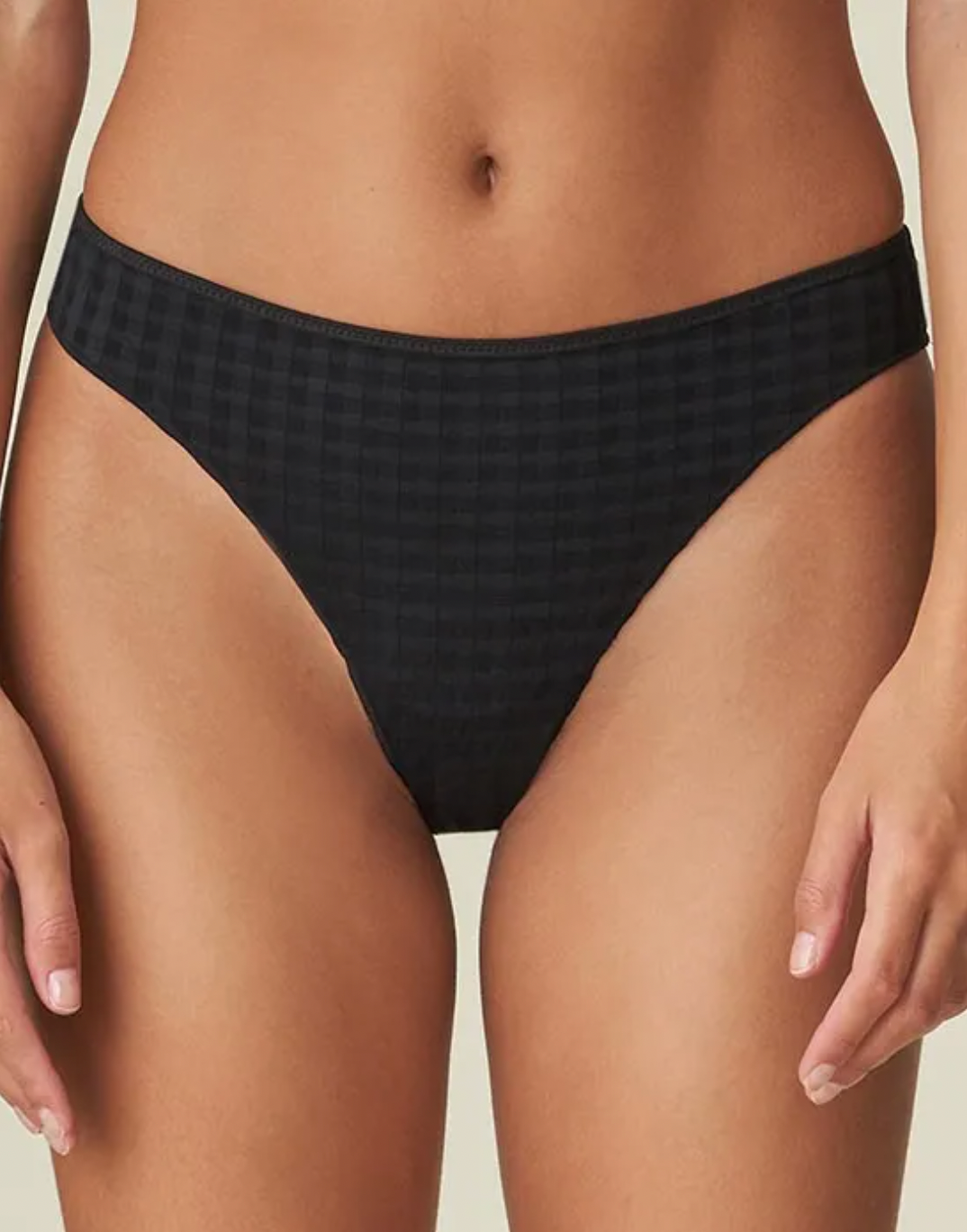 Beskrivelse: Klassisk og elegant stringtruse fra kvalitetsmerket Marie Jo. Stringtrusen har normal passform og høyde, og er dekorert med en lekker blomst bak.