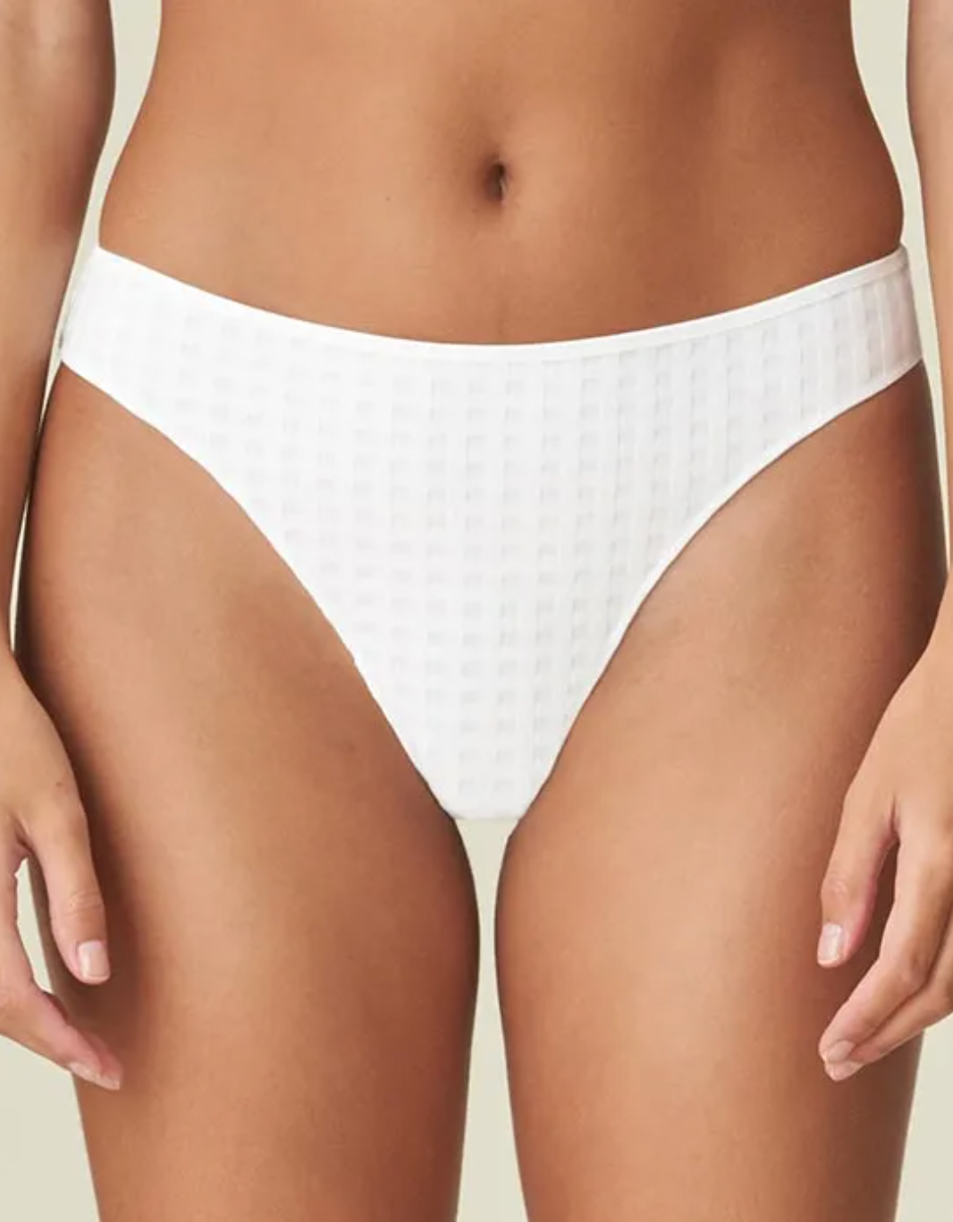 Beskrivelse: Klassisk og elegant stringtruse fra kvalitetsmerket Marie Jo. Stringtrusen har normal passform og høyde, og er dekorert med en lekker blomst bak.
