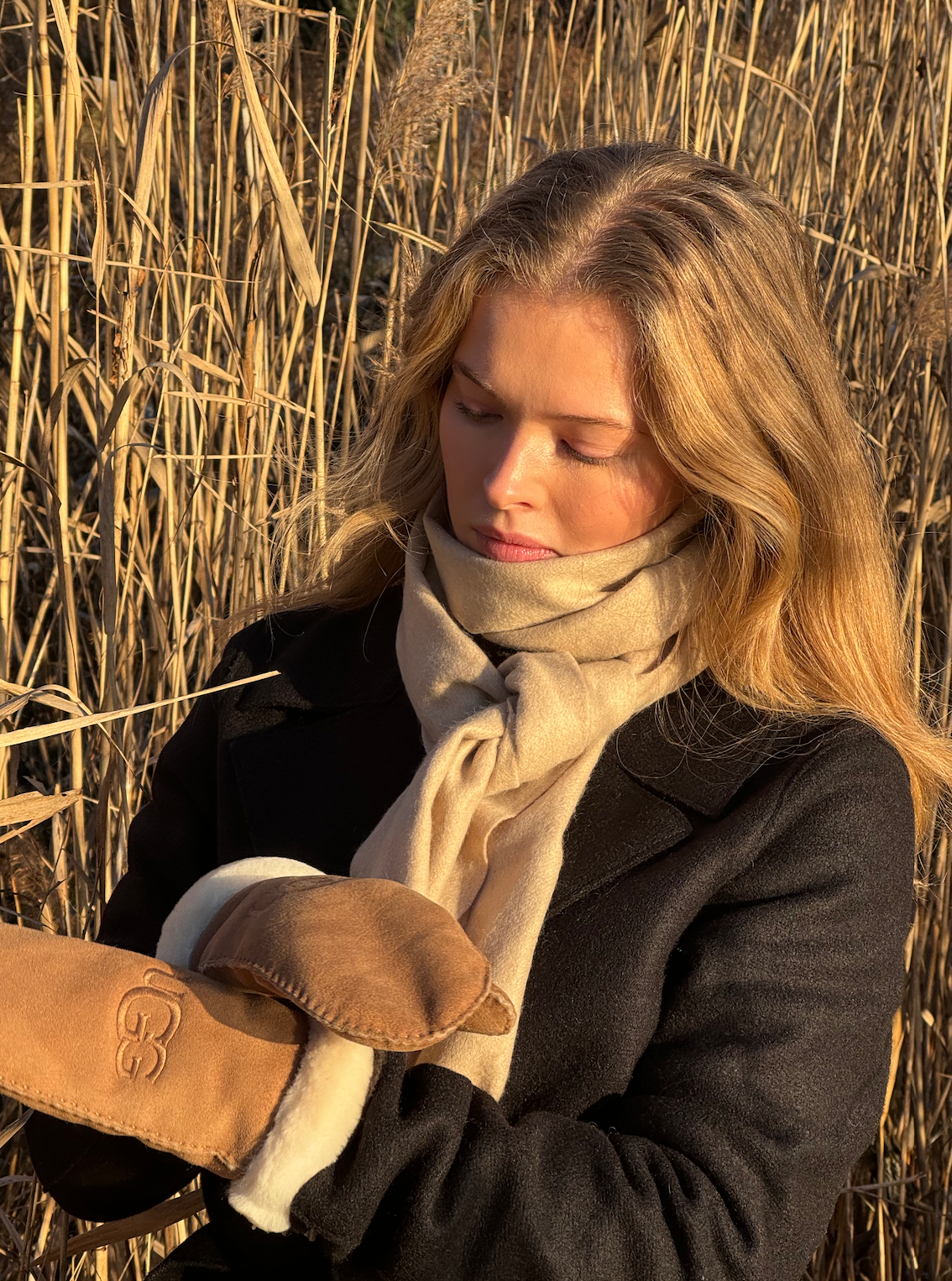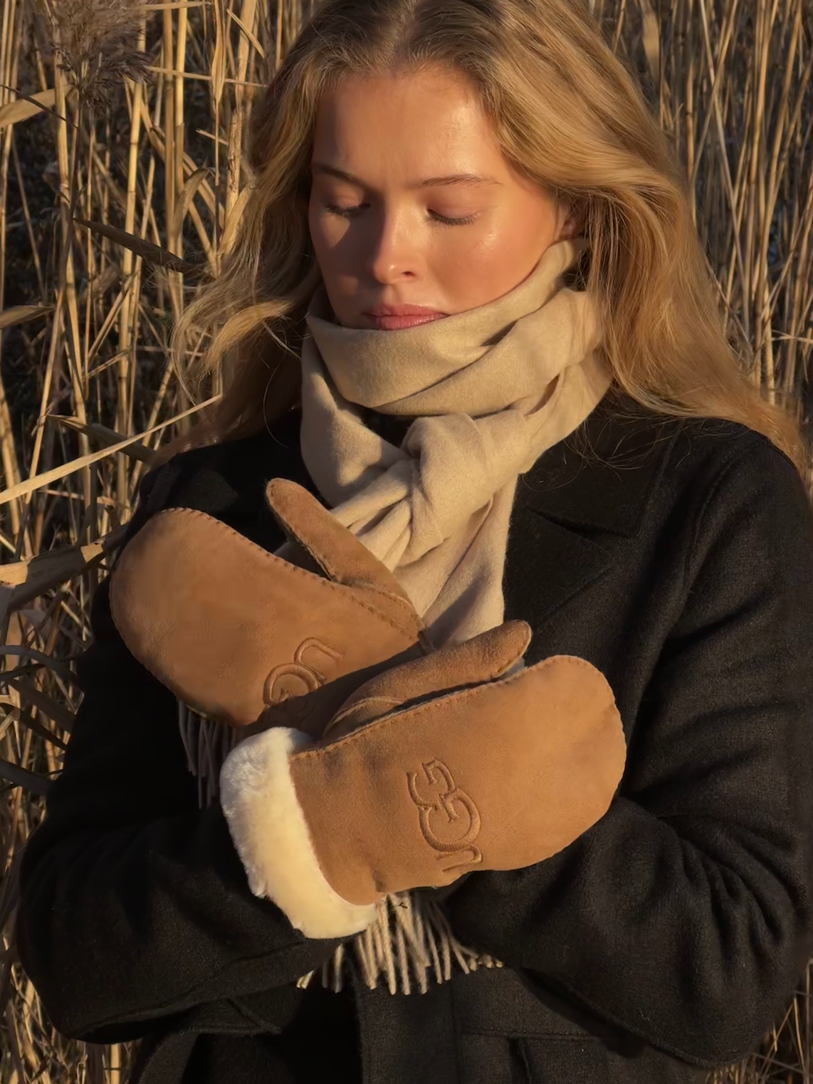 Beskrivelse: Laget av signatur saueskinn behandlet for økt vannmotstand, vil denne myke votten holde deg varm med stil. Med en brodert UGG-logo passer den perfekt sammen med vårt matchende saueskinnstilbehør.