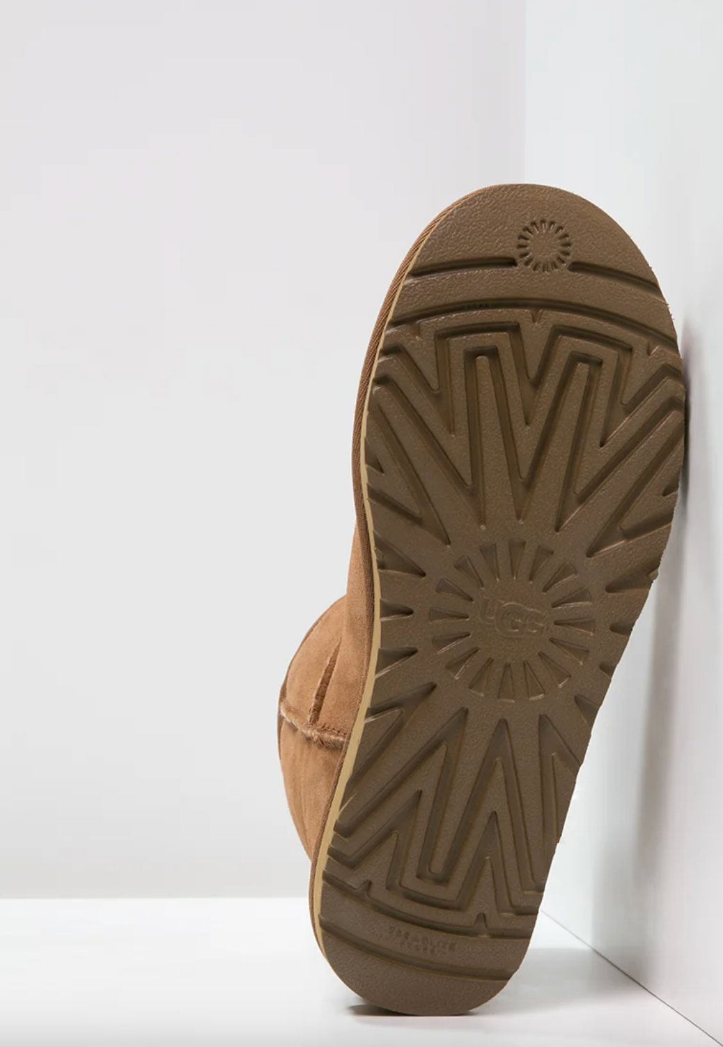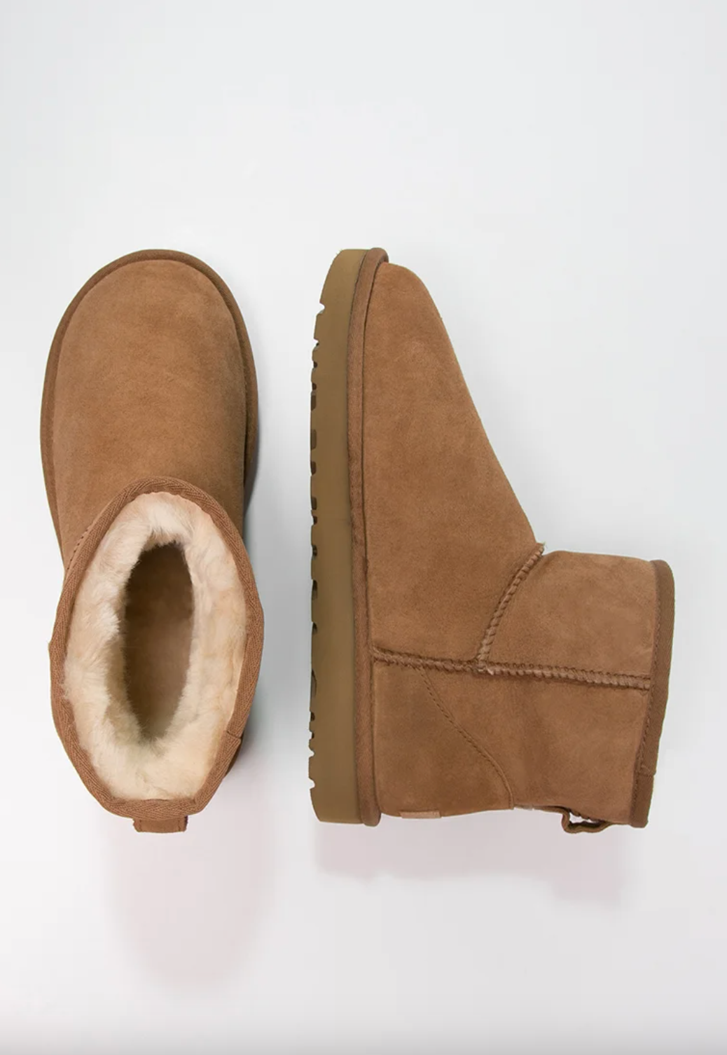 Beskrivelse: Boots Classic Mini II fra UGG er herlige med varmende saueskinn i hele bootsen. Det naturlige ullfôret transporterer bort fukt og holder deg tørr, behagelig og varm på kalde dager. Tekstilbånd rundt skaftekanten og sålekanten. Hempe bak på skaftet. Tykk såle som er deilig dempende og isolerer godt mot det kalde underlaget.